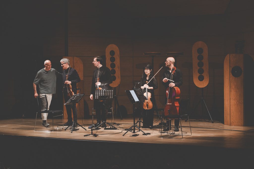 ∞ 8 (Huit — Huit Images De La Région Intérieure) Italian Premiere — following the world premiere at Museu de Arte Contemporânea de Serralves, Porto. Performed by Syntax Ensemble (Francesco D’Orazio, Stefano Raccagni, Yoko Morimyo, Fernando Caida Greco) for string quartet, modular synthesizer diffused in open space, live electronics Sound direction: Massimo Colombo, Giovanni Cospito → INNER_SPACES